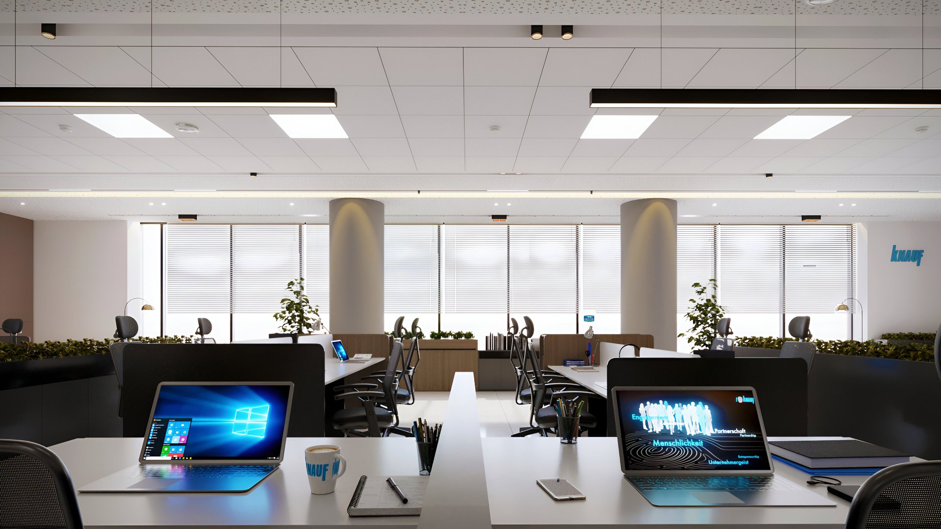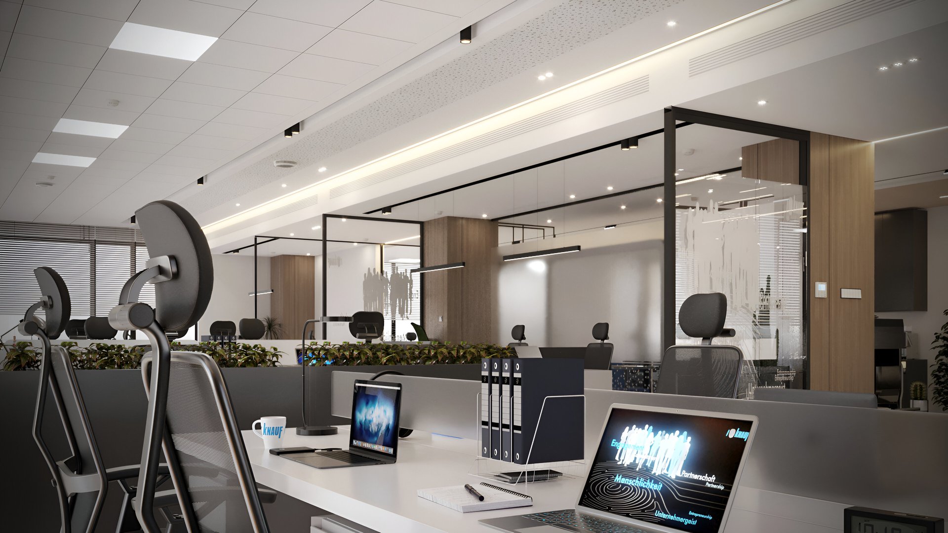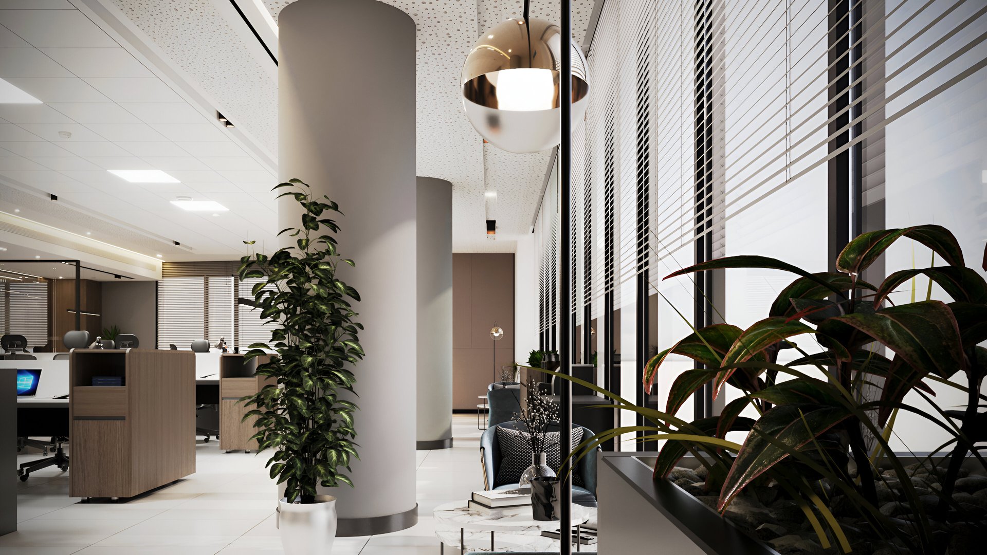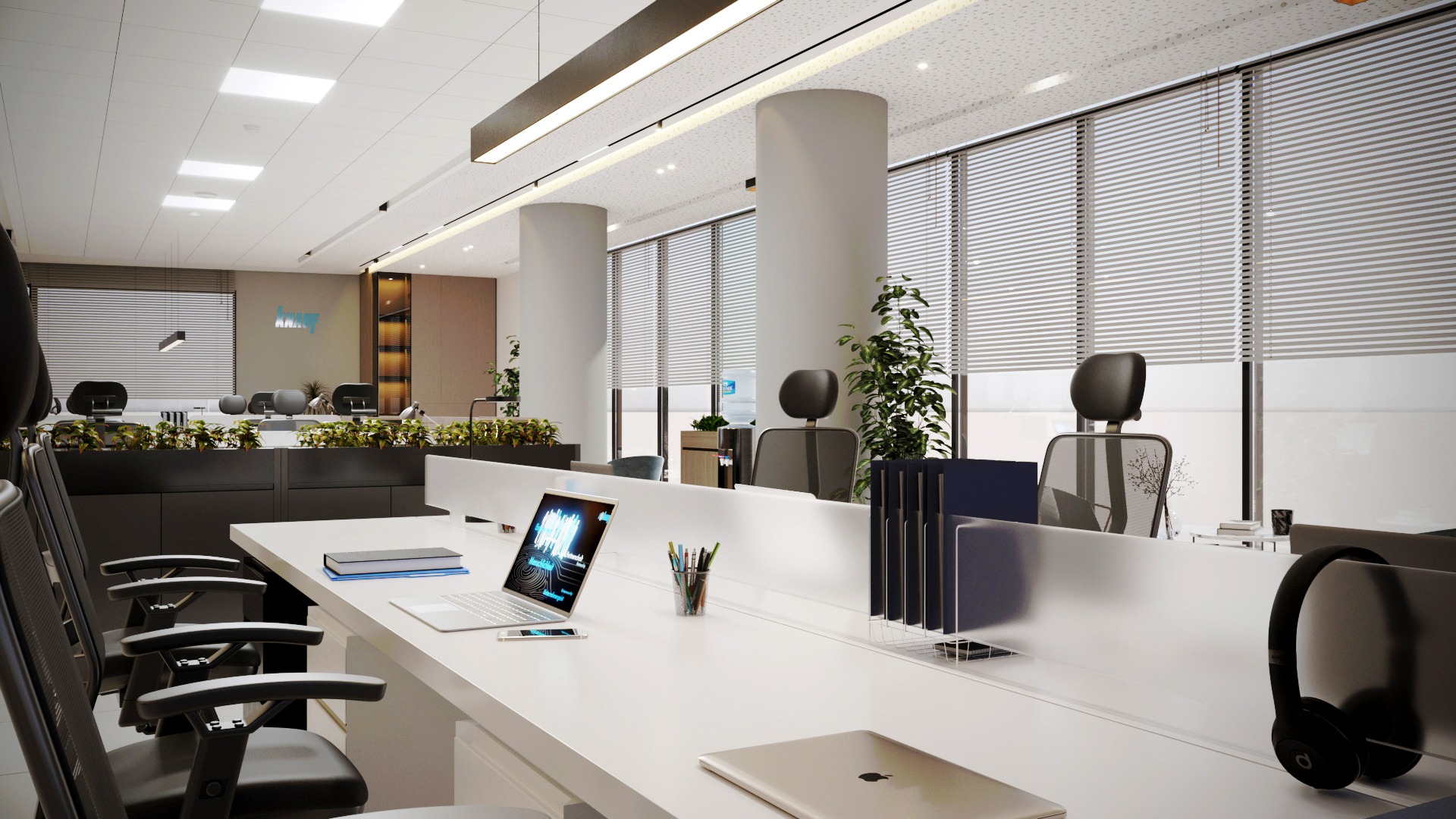 Le concept traduisent l'engagement en faveur d’un environnement professionnel de qualité, alliant esthétique contemporaine, fonctionnalité et bien-être. L’organisation de l’espace s’articule autour de postes de travail spacieux, d’allées dégagées et de séparations végétalisées qui apportent une touche de fraîcheur naturelle. Les grandes baies vitrées équipées de stores orientables permettent un contrôle optimal de la lumière tout au long de la journée.